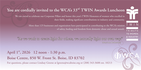 The WCA is proud to announce that the annual Tribute to Women and Industry Awards is back for its 33rd year with Regence BlueShield of Idaho as our Honorary Chair. We are so excited to honor the 2026 cohort of TWINS and welcome them into our community of nearly 1,300 "Forever TWINs" with the help of the Regence team. The luncheon will take place on April 1st from noon to 1:30 p.m. at the Boise Centre.