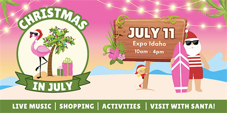 Celebrate the holiday spirit early at Christmas in July! Get ready for a day filled with festive cheer as we bring the magic of Christmas to the middle of summer! Join us on July 11th, 2026, at Expo Idaho, from 10 AM to 4 PM.